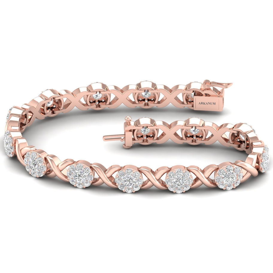 This bracelet is finely sculpted to let light symmetry through diamonds. In our balanced designs, this bracelet arrays with harmonious poise. A jewel inspiring equilibrium, radiating balanced beauty. Every gem is selected for hue and clarity, set with masterful precision. Featuring a total weight of approximately 6.00 carats of certified diamonds.